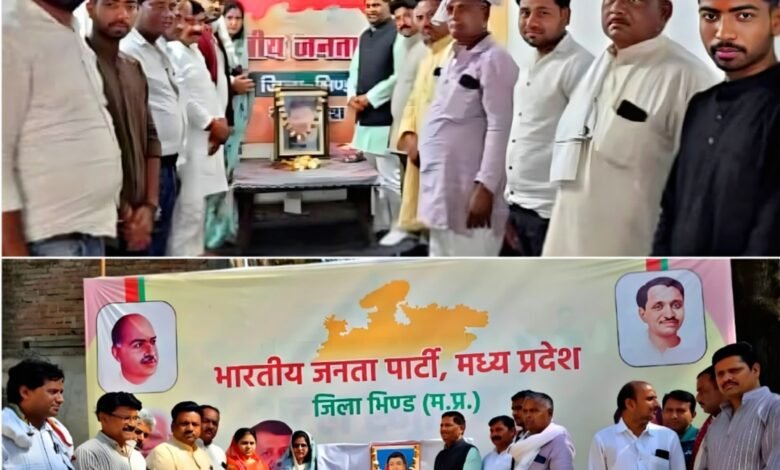 भिंड भाजपा जिला कार्यालय में सावित्रीबाई फुले की पुण्यतिथि एवं स्वर्गीय माधवराव सिंधिया की जयंती मनाई , जिलाअध्यक्ष देवेंद्र नरवरिया व कार्यकर्ता रहे मौजूद।