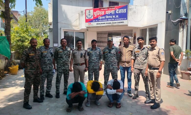 थाना देहात भिण्ड पुलिस को मिली सफलता, 30 हजार रूपये के तीन ईनामी बदमाश गिरफ्तार।
