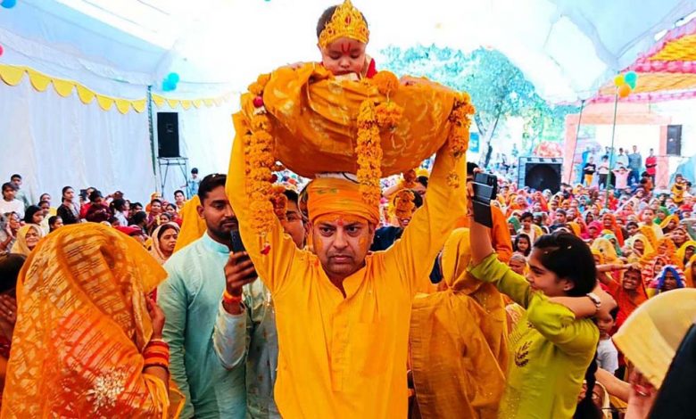 गोरमी। ग्राम पंचायत मानहड़ के पीपरा बाबा मन्दिर मे चल रही श्रीमद् भागवत कथा के पांचवे दिन रविवार को श्रीकृष्ण जन्मोत्सव का कथा व्यास वासुदेव शास्त्री ने मनमोहक वर्णन किया। इस अवसर पर भगवान कृष्ण की बाल छवि को अवतरित करते हुए मनमोहक झांकी सजाई गई, झांकी के दौरान जब माता यशोदा के द्वारे पर भक्त पहुंचे तो नाचते हुए गाते हुए और कृष्ण भक्ति में झूमते हुए नजर आए, कथा पंडाल में बैठे लोग झूम उठे और ब्रज में बैठने का आभास होने लगा। भगवान कृष्ण की अलौकिक शक्ति के परिणाम स्वरूप सुंदर मनोहारी लीलाओं का वर्णन भी किया गया।