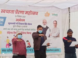 भिंड शहर में चलाया गया स्वच्छता अभियान। जिसमें भिंड कलेक्टर सतीश कुमार एस एवं एसपी शैलेंद्र सिंह चौहान सहित अन्य विभागों के जिला अधिकारी मौजूद रहे। स्वच्छ भारत मिशन के तहत प्रदेश सरकार के आव्हान पर नगर पालिका अमला ने समाजसेवी संगठनों के साथ स्वच्छता रैली निकालकर लोगों को जागरूक किया। दौड़ेगा भिंड जीतेगा भिंड अभियान में जिला अस्पताल से रैली की शुरुआत हुई। इस दौरान कलेक्टर के साथ अभियान में पहुंचे एसपी शैलेन्द्र सिंह चौहान ने खुद कचरा उठाकर लोगों को प्रेरित किया। स्वच्छता अभियान की कमान संभाल रहे सोनू राजावत सहित कई समाजसेवियों ने इस कार्यक्रम में भाग लिया। शहर को सुंदर व स्वच्छ बनाने की दिशा में प्रमुख सड़कों से गुजरते हुए लोगों को साफ सफाई रखने का संदेश दिया। कलेक्टर-एसपी के साथ समाजसेवियों ने कचरा भी उठाया। कार्यक्रम का मुख्य आयोजन नगरपालिका प्रांगण में हुआ। जहां कलेक्टर डॉ सतीश कुमार एस और एसपी शैलेन्द्र सिंह चौहान ने लोगों से स्वच्छता में सहयोग मागा। इसके साथ ही अधिकारी व कर्मचारियों को निरंतर कचरा कलेक्शन, नालों की सफाई, सड़कों पर झाड़ू और मोहल्लों में सड़कों की स्थति ठीक करने के लिए निर्देश दिए गए। अभियान के दौरान श्रवण पाठक, बबलू सिंधी, प्रभात राजावत, तिलक सिंह भदौरिया,राहुल सिंह कुशवाह सहित कई समाजसेवी संगठन के लोग शामिल रहे मौजूद रहे।