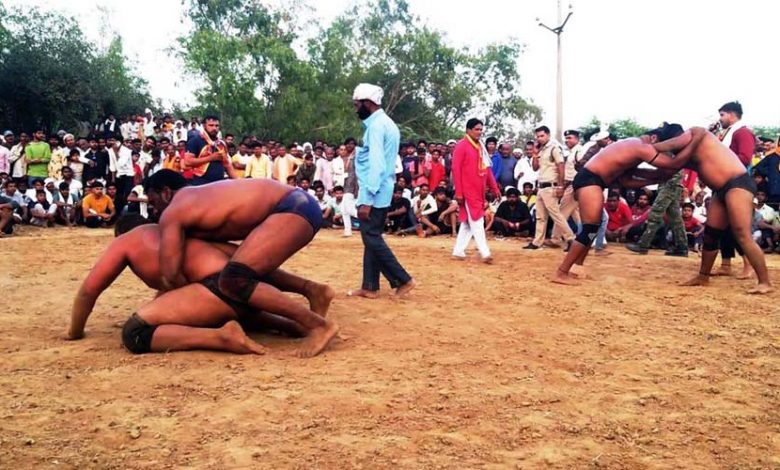 मां अन्नपूर्णा मन्दिर में हुई दंगल प्रतियोगिता में बराबरी पर छूटी कुश्ती