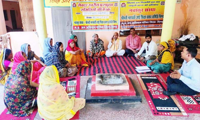भिण्ड। नवांकुर संस्था श्रीमती भागवंती बाई शिक्षा प्रसार समिति एवं मप्र जन अभियान परिषद भिण्ड के संयुक्त तत्वावधान एवं जिला समन्वयक शिवप्रताप सिंह भदौरिया के मार्गदर्शन में सेक्टर दबोहा की बैठक गायत्री मन्दिर कुम्हरौआ में आयोजित की गई। इस अवसर पर रिटायर्ड एवं योगा शिक्षक गायत्री परिवार से जुड़े सुरेन्द्र सिंह चौहान ने गायत्री मंत्र के साथ बैठक का शुभारंभ किया।