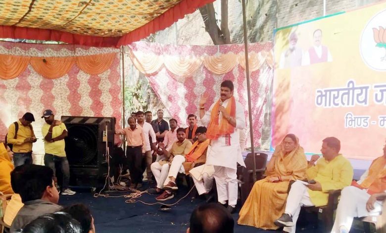 भिण्ड। भारत सरकार के नागरिक उड्डयन मंत्री ज्योतिरादित्य सिंधिया के 15 अप्रैल को भिण्ड में होने जा रहे विशाल कार्यक्रम एवं 16 अप्रैल को ग्वालियर में आयोजित बाबा साहब भीमराव अंबेडकर के महाकुंभ की तैयारी को लेकर भाजपा जिला कार्यालय पीडब्ल्यूडी कॉलोनी पर बैठक आयोजित की गई। जिसमें जिले के प्रभारी, राजस्व एवं परिवहन गोविन्द सिंह राजपूत, ऊर्जा मंत्री प्रद्युमन सिंह तोमर, नगरीय प्रशासन आवास राज्यमंत्री ओपीएस भदौरिया, प्रदेश उपाध्यक्ष एवं भिण्ड-दतिया सांसद संध्या राय, विधायक संजीव सिंह कुशवाह संजू, पूर्व विधायकगण शिवशंकर समाधिया, मुन्नासिंह भदौरिया, नरेन्द्र सिंह कुशवाह, रणवीर जाटव, प्रदेश कार्यकारिणी सदस्य डॉ. रमेश दुबे, श्रीमती कृष्णकांता तोमर मंचासीन थे। अध्यक्षता जिला अध्यक्ष देवेन्द्र सिंह नरवरिया ने की।
