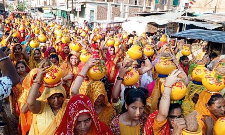 24 कुण्डीय गायत्री महायज्ञ के शुभारंभ पर गोहद में निकली भव्य कलश यात्रा