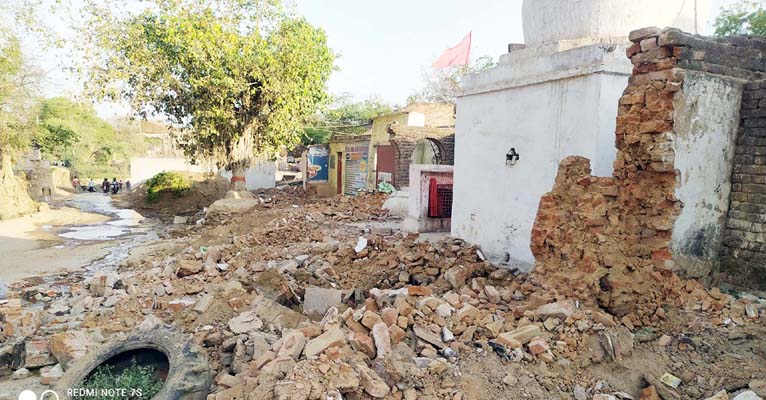 आलमपुर। सोनभद्रिका नदी पर बन रहे नवीन पुल के दोनों ओर बनने वाली सडक़ के चौड़ीकरण को लेकर सोमवार को आलमपुर कस्बे में नवीन पुल के पास कांमाक्षा देवी छोटी माता मन्दिर के सामने बने करीब आधा दर्जन मकानों दुकानों पर जेसीबी मशीन से तोड़-फोड़ की गई है।