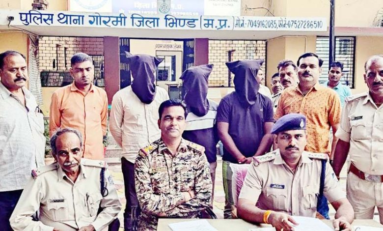 जानकारी के अनुसार 16 अप्रैल को कांच एल्यूमीनियम फर्नीचर व्यापारी गोरमी शिवशंकर शर्मा की दुकान पर चार अज्ञात व्यक्तियों द्वारा रंगदारी दिखाते हुए दुकान पर फायरिंग करने की सूचना दी कि एक व्यक्ति पहले कांच खरीदने आया था, जिससे मोल भाव पर विवाद हो गया, वह यह कहकर दुकान से चला गया कि अभी देखता हूं, थोड़ी देर बाद अपने तीन दोस्तों के साथ दुकान पर आए और गालियां दे हुए जान से मारने की धमकी देकर दुकान पर दो फायर किए। फरियादी शिवशंकर उर्फ आशू पुत्र रामकुमार शर्मा निवासी ग्राम महदोली थाना गोरमी की रिपोर्ट पर से थाना पर अपराध क्र.105/23 धारा 336, 294 , 506, 34 ताहि का कायम किया गया। घटना की गंभीरता को देखते हुए वरिष्ठ अधिकारियों को अवगत कराया गया। जिस पर से पुलिस अधीक्षक भिण्ड शैलेन्द्र सिंह चौहान एवं एएसपी कमलेश कुमार खरपुसे एवं एसडीओपी मेहगांव आरकेएस राठौर के निर्देशन में थाना की विशेष टीम गठित कर गोरमी बाजार में फायरिंग कर दहशत फैलाने वाले चारों आरोपियों की धरपकड़ हेतु रवाना की गई। बाद गोरमी बाजार में फायरिंग कर दहशत फैलाने वाले अज्ञात व्यक्तियों की घेराबंदी की, जिसमें से एक व्यक्ति ग्राम बहेरा थाना गोरमी का, दूसरा व्यक्ति ग्राम किशनपुरा थाना गोरमी तथा तीसरा व्यक्ति कचनाव रोड गोरमी को पुलिस अभिरक्षा में लेकर पूछताछ करने पर घटना में प्रयुक्त एक 315 बोर की अधिया तथा एक 315 बोर का जिंदा व एक चला हुआ राउण्ड तथा एक 315 बोर का देशी कट्टा तथा एक 315 बोर का जिंदा व एक चला हुआ राउण्ड, एक प्लेटिना मोटर साइकिल उनकी निशानदेही पर बरामद कर आरोपियों को गिरफ्तार किया गया।