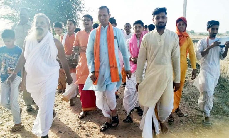 भिण्ड। जिले के प्रसिद्ध धार्मिक स्थल दंदरौआ धाम के महंत महामण्डलेश्वर श्री रामदास महाराज के सानिध्य में गुरुवार को श्रृद्धालुओं द्वारा पांच किमी लंबी रामधुन यात्रा का आयोजन किया गया। यात्रा में महंत श्री रामदास महाराज सहित अन्य श्रृद्धालु धर्म ध्वजा लेकर चले।