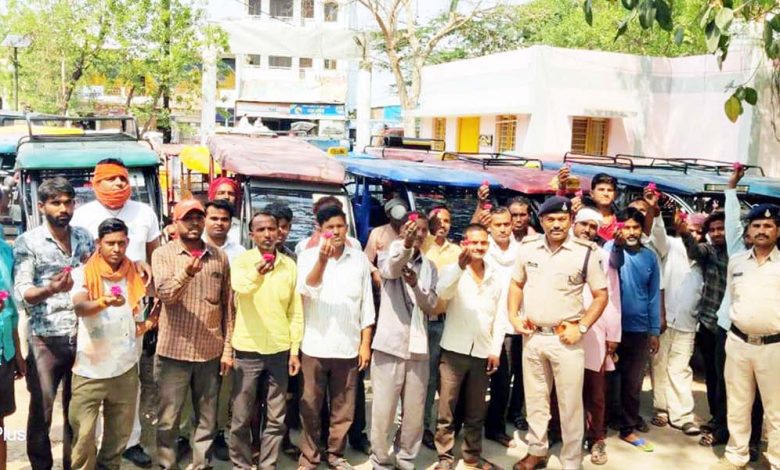 तीन पहिया वाहन चालकों को गुलाब का फूल भेंट कर यातायात नियमों का पालन करने की दी समझाइश