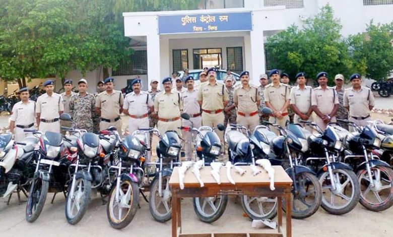 19 बाईकें, चार बंदूक, दो कट्टा, कई कारतूस, एक तलवार जब्त