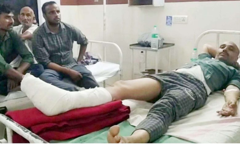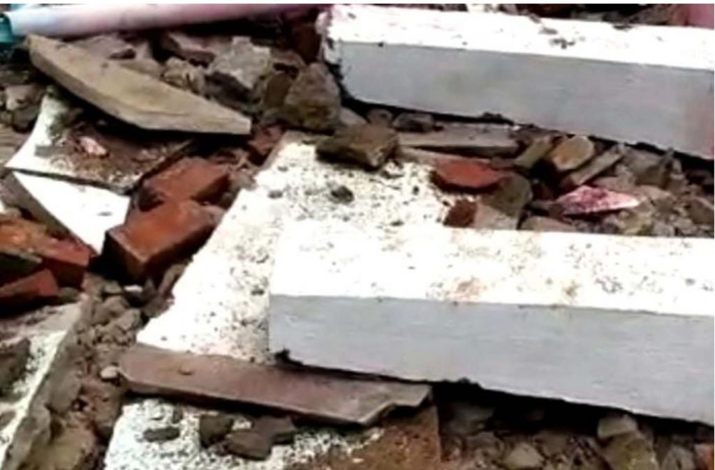 दुकानों के मलवे में दबकर पिता-पुत्र घायल
