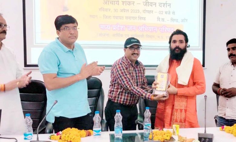 जिला पंचायत सभागार में आचार्य शंकर पर आयोजित एकात्म पर्व व्याख्यानमाला में दीप प्रज्वलन और स्वागत भाषण, कार्यक्रम की रूपरेखा के बाद बोलते हुए स्वामी श्री आदित्य पुरी महाराज ने कहा कि सामाजिक विषमताओं का दौर सदैव से चलता रहा है, समाज में विभिन्न मतों के माध्यम से अपने-अपने संदेश दिए गए हैं, उनमें कुछ संदेश समाज को विकास की ओर प्रगति की ओर लेकर जाने वाले भी रहे हैं तो कुछ संदेश ऐसे भी रहे हैं जिनसे समाज में विघटन की स्थिति बनी, जातीय भेदभाव पनपा और सामाजिक विद्वेष बढ़ा। ऐसी स्थिति में आचार्य शंकर ने समाज में समरसता समानता और एकात्मता के लिए अद्वैत मत को साकार किया। जिससे कि समाज में एकरूपता आ सके उनका यह कार्य संसार को एक सूत्र में पिरोने का था सही मायने में हमें उनके संदेश को आज घर-घर पहुंचाने की आवश्यकता है।