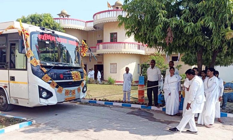 प्रजापिता ब्रह्माकुमारी मालनपुर आश्रम में बीके आशीष भाई ने 50 मीटर बस खींची