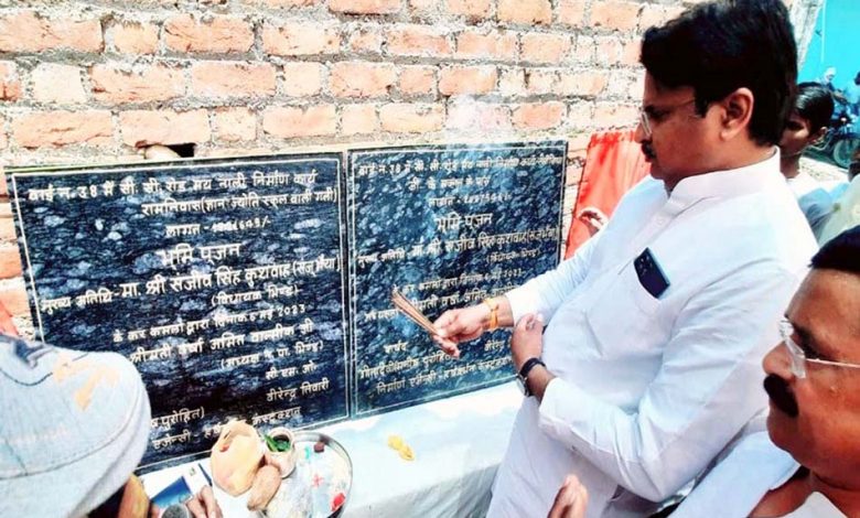 विधायक संजीव सिंह कुशवाह ने वार्ड 38 अशोक नगर में 26 लाख 27 हजार 546 की राशि से सीरोठिया वाली गली एवं 13 लाख 21 हजार 649 की लागत से ज्ञान ज्योति स्कूल गली में सीसी रोड मय नाली निर्माण कार्यों को भूमि पूजन किया। इस मौके पर उन्होंने कहा कि भिण्ड शहर का निर्माण आप सबकी सहभागिता से संपन्न हो रहा है। शहर में विकास की मूलभूत संरचना, मानव संसाधन के बेहतर उपयोग, सडक़ें, बिजली जैसी जीवन की मूलभूत सुविधाओं के लिए सुनियोजित प्रयास आवश्यक है। हम नए रूप में शहर के निर्माण के लिए नई जरूरतों के लिए रोडमैप बनाकर काम करे रहे हैं।