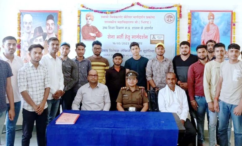 मौ। शासकीय महाविद्यालय मौ में स्वामी विवेकानंद कैरियर प्रकोष्ठ योजना के अंतर्गत सेना भर्ती मार्गदर्शन हेतु कार्यशाला का आयोजन किया गया।