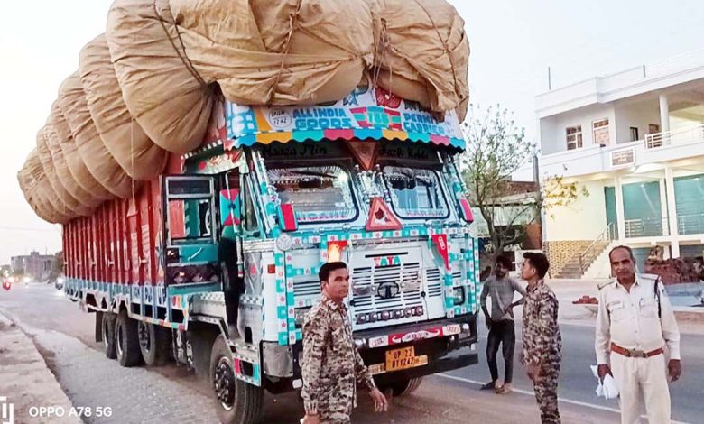 अवैध रूप से तूरी का परिवहन कर रहे ट्रकों पर पुलिस ने की चालानी कार्रवाई