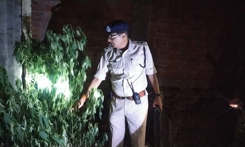 गांजे की खेती पर एसपी की दविश, मौके पर एसडीओपी व थाना प्रभारी भी दल बल के साथ।