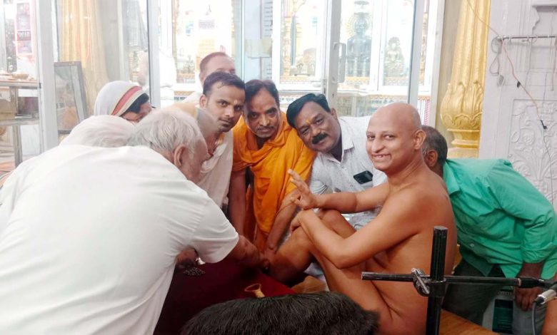 कार्यक्रम के शुभारंभ में मुनिराज का पाद प्रक्षालन मन्दिर कमेठी महिला मण्डल ने किया। इस अवसर पर संजीव जैन बल्लू, अशोक जैन, सुभाष जैन, राजेश जैन, मनोज जैन, अशोक महामाया आदि महिला-पुरुष उपस्थित थे।