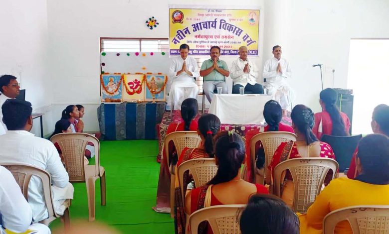 नर्मदापुरम। विद्या भारती मध्य भारत प्रांत की योजनानुसार चयनित नवीन आचार्य प्रशिक्षण वर्ग गोविन्द नगर में चल रहा है। वर्ग के उद्घाटन सत्र में आचार्य दीदियों को संबोधित करते हुए बीआरएसी राकेश रघुवंशी ने कहा कि सरस्वती शिशु मन्दिर विद्यालय जीवन जीने की कला सिखाते हैं। यहां संस्कारयुक्त शिक्षा पर जोर दिया जाता है। अनुशासन, समयपालन और देशभक्ति यहां की पूंजी है। मैंने भी सरस्वती शिशु मन्दिर विद्यालय में अध्यापन कार्य कराया है। आज मेरे जीवन में जो भी सकारात्मक परिवर्तन आया उसमें यहां की महत्वपूर्ण भूमिका है।