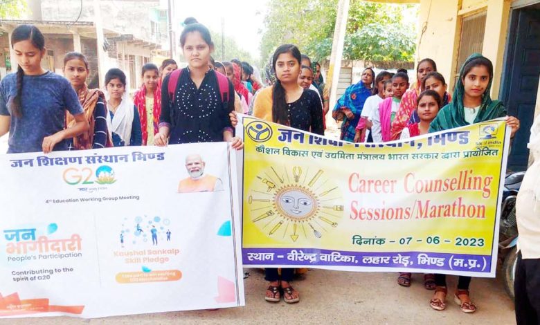 भिण्ड। कौशल विकास एवं उद्यमिता मंत्रालय भारत सरकार द्वारा जन भागीदारी पखवाड़ा (एक से 15 जून) के अंतर्गत जन शिक्षण संस्थान भिण्ड में मैराथन का आयोजन किया गया। जिसमें 65 प्रतिभागियों ने भाग लिया। मैराथन बीरेन्द्र वाटिका, हाउसिंग बोर्ड कॉलोनी, मीरा कॉलोनी, माधौगंज हाट, गौरी का किनारा, वनखण्डेश्वर मन्दिर होते हुए जन शिक्षण संस्थान के परिसर में आकर संपन्न हुई।