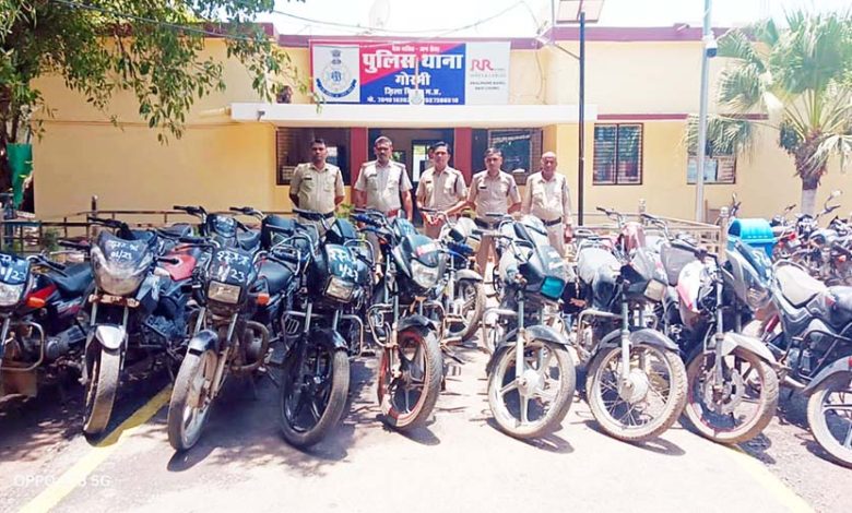 भिण्ड। गोरमी थाना पुलिस ने अंतर्राज्यीय चोर गिरोह के दो सदस्यों को गिरफ्तार कर चोरी की 19 मोटर साइकिलें विभिन्न स्थानों से जब्त कर ली हैं।