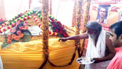 निराला रंग बिहार में चल रहे पंच कल्याणक प्रतिष्ठा महोत्सव में भगवान के जन्म कल्याणक अवसर पर विधायक संजीव सिंह कुशवाह मेडिटेशन गुरू उपाध्याय विहसंत सागर महाराज से आशीर्वाद लेने पहुंचे।