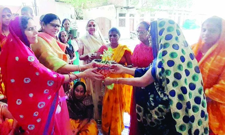 परमार्थ महिला मण्डल समिति ने बांटे तुलसी के पौधे