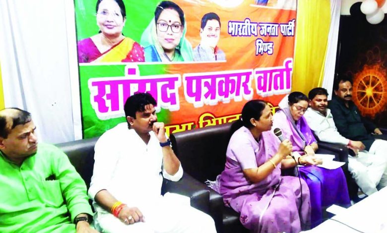 भाजपा प्रदेश उपाध्यक्ष एवं भिण्ड दतिया सांसद श्रीमती संध्या राय ने पत्रकारों से चर्चा करते हुए कहा कि प्रधानमंत्री नरेन्द्र मोदी के नेतृत्व वाली केन्द्र सरकार ने गरीब कल्योण के लिये अनेको योजना बनाकर विकास की मुख्याधारा से जोड़ा है। उन्होंने केन्द्र एवं प्रदेश की शिवराज सिंह सरकार की विभिन्न उपलब्धियों को गिनाया साथ ही भिण्ड-दतिया संसदीय क्षेत्र में भाजपा सरकार द्वारा कराए गए विकास कार्यों की जानकारियां दीं।