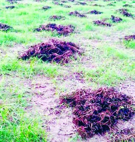 जिले के अटेर जनपद की सुरपुरा उपतहसील के अंतर्गत आने वाले ग्राम बड़ेपुरा निवासी किसान जगन्नाथ सिंह भदौरिया ने मौजा चाचर स्थित अपने खसरा नं.488 एवं 490 में गर्मी के सीजन में होने वाली मूंग की फसल बोई थी। उनकी करीब दो लाख की मूंग की फसल खेत में कटी रखी थी, जो विगत दिनों भारी बारिश के चलते खराब होकर खेत में ही पड़ी रह गई। तीन दिन की भारी बारिश फसल ने ऐसे कई किसानों को तबाह कर दिया है। इस संबंध में हल्का पटवारी को भी सूचना कर दी गई थी, बावजूद इसके स्थल निरीक्षण नहीं किया गया है। स्थानीय लोगों एवं संबंधित किसानों ने जिला प्रशासन से मुआवजा दिलाए जाने की मांग की है।