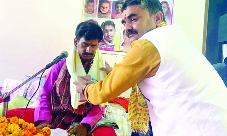 मेहगांव। मेहगांव नगर के चंदोखर की पार में चल रही श्रीमद् भागवत कथा के सप्तम दिवस भागवत कथा में सुनने पहुंचे भाजपा किसान मोर्चा प्रदेश कार्यसमिति सदस्य रज्जन भदौरिया ने व्यासपीठ को प्रणाम कर व्यास पवन शास्त्री से आशीर्वाद प्राप्त किया। तत्पश्चात भागवत कथा के मुख्य यजमान और पारीक्षित के साथ भागवत कथा श्रवण की। इस दौरान भाजपा एनजीओ प्रकोष्ठ के नेता अरविन्द सिंह भदौरिया, किसान मोर्चा मीडिया प्रभारी भूपेन्द्र ओझा आदि लोग उपस्थित रहे।