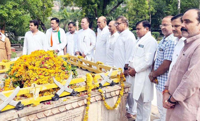 रानी लक्ष्मीबाई की समाधि पर कांग्रेस नेताओं ने अर्पित की पुष्पांजलि