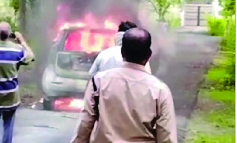 जीवाजी यूनिवर्सिटी में अज्ञात कार में लगी आग