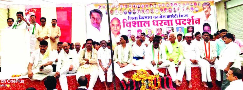 मेहगांव। किसान कांग्रेस भिण्ड के जिला अध्यक्ष गजेन्द्र सिंह भदौरिया के नेतृत्व में द्वारा किसानों की समस्याओं को लेकर मेहगांव तहसील कार्यालय पर विशाल धरना प्रदर्शन किया गया, तत्पश्चात राज्यपाल के नाम सात सूत्रीय ज्ञापन तहसीलदार रंजीत सिंह कुशवाह को सौंपा। कार्यक्रम में बतौर मुख्य अतिथि किसान कांग्रेस के प्रदेश अध्यक्ष दिनेश सिंह गुर्जर के साथ जिला कांग्रेस अध्यक्ष मानसिंह कुशवाहा मौजूद रहे। इस अवसर पर मुख्य अतिथि किसान कांग्रेस के प्रदेश अध्यक्ष दिनेश गुर्जर ने किसानों को माल्यार्पण कर सम्मानित किया।