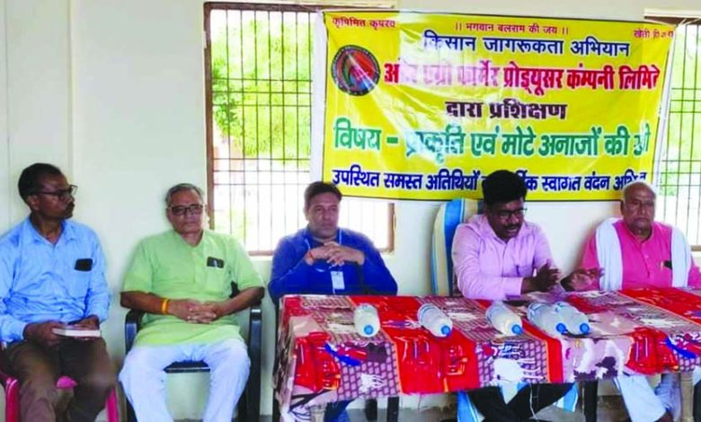 भिण्ड। किसान जागरुकता अभियान के अंतर्गत अटेर एग्रो फार्मर प्रोड्यूसर कंपनी लिमिटेड द्वारा ग्राम कनेरा में प्राकृतिक एवं मोटे अनाजों की खेती के संबंध में प्रशिक्षण कार्यक्रम का आयोजन कलेक्टर डॉ. सतीश कुमार एस की उपस्थिति में किया गया। इस दौरान उप संचालक कृषि आरएस शर्मा, एसएडीओ अटेर, नमोनारायण दीक्षित, कनेरा सरपंच सहित अन्य अधिकारी, किसान भाई उपस्थित रहे।