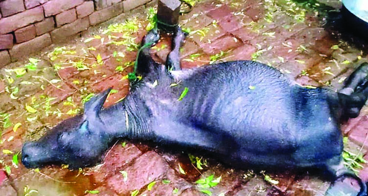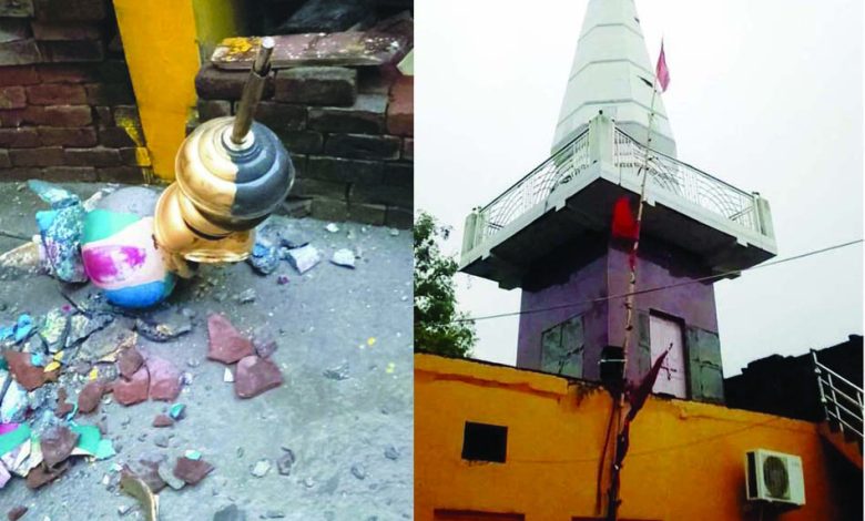 आकाशीय बिजली गिरने से मन्दिर के गुंबद के कलश गिरे, भैंस की मौत