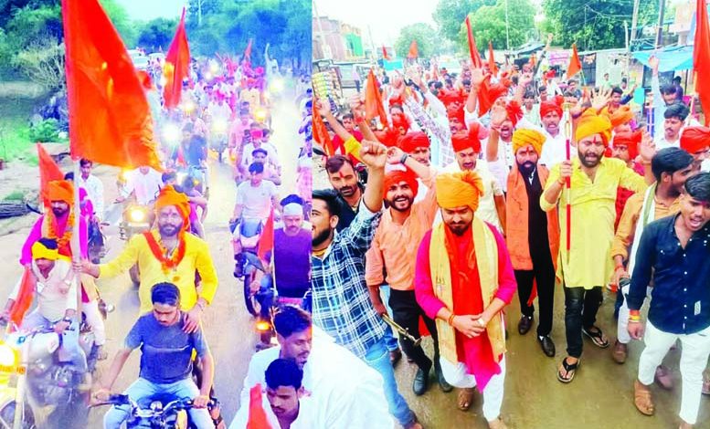 राष्ट्रीय राजपूत करणी सेना ने अमायन में निकाली केसरिया वाहन रैली