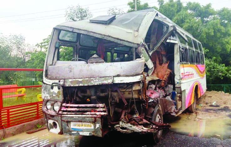 तेज रफ्तार बस ने खडे ट्रेक्टर ट्रॉली में पीछे से मारी टक्कर, दो की मौत, 40 लोग घायल