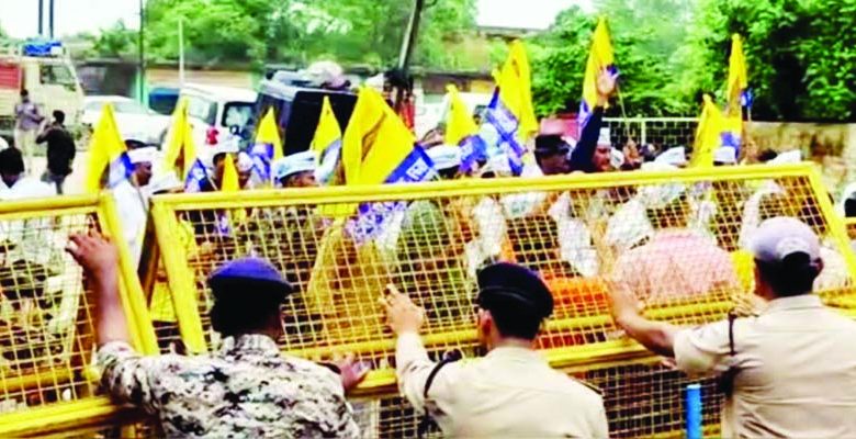 आम आदमी पार्टी ने किया विधायक बंगले का घेराव