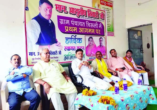 लहार। मप्र गृह निर्माण एवं अधोसंरचना विकास मण्डल के अध्यक्ष (कैबिनेट मंत्री दर्जा प्राप्त) आशुतोष तिवारी ने शनिवार को लहार क्षेत्र के कई गांव में भ्रमण किया। भ्रमण के दौरान ग्राम पंचायत चिरूली में सीसी रोड एवं नाला निर्माण का भूमिपूजन किया। इस अवसर पर ग्राम पंचायत चिरूली के सरपंच ने निगम अध्यक्ष तिवारी का स्वागत किया। कार्यक्रम में बड़ी संख्या में ग्रामीणजन उपस्थित रहे। निगम अध्यक्ष तिवारी ने जनसमूह को संबोधित करते हुए आगामी विधानसभा चुनाव में तैयार रहने के लिए लोगों से अपील तथा भारतीय जनता पार्टी की जन कल्याणकारी योजनाओं के बारे में भी अवगत कराया।