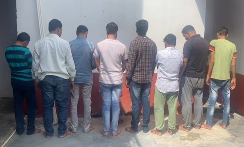 एसपी के निर्देश पर देहात एवं साइबर पुलिस की संयुक्त कार्रवाई में करीब पौने ₹ 6 लाख की नकदी सहित आठ जुआरियों को धर दबोचा।
