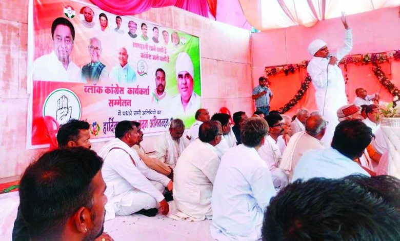 प्रियंका गांधी की सभा के लिए आयोजित बैठक के बैनर से गोहद विधायक का फोटो गायब