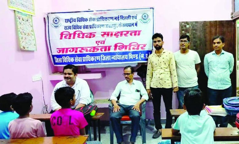 भिण्ड। प्रधान जिला एवं सत्र न्यायाधीश एवं अध्यक्ष जिला विधिक सेवा प्राधिकरण भिण्ड सुरभि मिश्रा के आदेशानुसार एवं जिला न्यायाधीश एवं सचिव हिमांशु कौशल के मार्गदर्शन में बालकों के लिए मैत्रीपूर्ण विधिक सेवाएं योजना 2015 के अंतर्गत बच्चों के कानूनी अधिकारों के संबंध में बालगृह अटेर रोड भिण्ड में विधिक साक्षरता एवं जागरूकता शिविर का आयोजन किया गया।