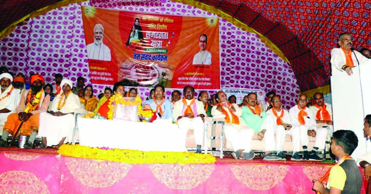 इस अवसर पर राष्ट्रीय अध्यक्ष एवं समरसता यात्रा प्रभारी लालसिंह आर्य ने जनसंवाद कार्यक्रम को संबोधित कर कहा कि प्रदेश सरकार की पहल पर समरसता की पांच यात्राएं प्रारंभ की गई हैं। यह यात्राएं अलग-अलग जिलों से प्रारंभ होकर 12 अगस्त को सागर जिले में पहुंचेगी, जहां प्रधानमंत्री नरेन्द्र मोदी 100 करोड रुपए की लागत से संत रविदास मन्दिर की आधारशिला रखेंगे। इस मन्दिर के निर्माण में लगभग 313 पवित्र नदियों का जल और 53 हजार पंचायतों की मिट्टी एकत्रित कर लगाई जाएगी, ताकि सभी समाज में समरसता का भाव बना रहे। उन्होंने कहा कि संत रविदास महाराज ने सामाजिक समरसता का जो संदेश दिया है, उसका सभी अनुशरण करें, इसी उद्देश्य के साथ समरसता यात्रा का आयोजन प्रदेश सरकार द्वारा किया जा रहा है। प्रदेश सरकार ने हमेशा सामाजिक समरसता का संदेश देते हुए आदिवासी एवं अनुसूचित जाति के लोगों के जीवन स्तर में बदलाव लाने का काम किया है।