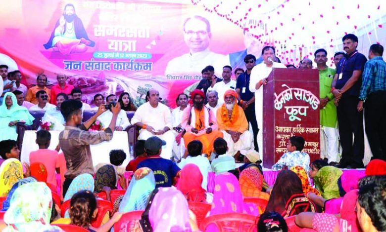 मप्र बांस शिल्प विकास बोर्ड के अध्यक्ष तथा समरसता यात्रा के संयोजक घनश्याम पिरोनिया ने कहा कि संत रविदास की यात्रा जन अभियान परिषद के सहयोग से निकाली जा रही है। इस यात्रा का मुख्य उद्देश्य है कि अंतिम छोर तक के व्यक्ति को योजनाओं का लाभ मिले। भाजपा जिलाध्यक्ष देवेन्द्र सिंह नरवरिया ने कहा कि समरसता यात्रा लोगों में भाव पैदा करेगी, उनको जोडने का कार्य करेगी और अपनी सहभागिता मन्दिर निर्माण में अवश्य देगी। क्योंकि इस मन्दिर निर्माण में सभी ग्राम पंचायतों की मिट्टी और पवित्र नदियों का जल लाकर समाहित किया जाएगा। उन्होंने कहा कि संत रविदास जी महान संत थे, जिनकी शिष्या मीराबाई थी। मीराबाई ने कृष्ण को अपने समक्ष में बुला लिया तो मीराबाई के गुरू संत रविदास कितने महान व्यक्ति थे।
