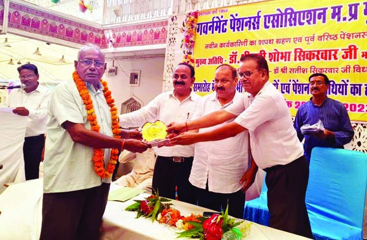 भिण्ड। गवर्नमेंट पेंशनर्स एसोसिएशन के प्रांत अध्यक्ष रविन्द्र त्रिपाठी एवं उनकी कार्यकारिणी का शपथ ग्रहण समारोह 29 जुलाई को आनंद होटल जनक गंज ग्वालियर में संपन्न हुआ। जिसमें मुख्य अतिथि के रूप में ग्वालियर पूर्व के विधायक डॉ. सतीश सिकरवार एवं नगर निगम महापौर शोभा सिकरवार ने मप्र कांग्रेस पूर्व अधिकारी कर्मचारी प्रकोष्ठ के भिण्ड जिलाध्यक्ष मोहन सिंह राजावत को स्मृति चिन्ह भेंट कर सम्मानित किया। राजावत को यह सम्मान मिलने पर संगठन के प्रांतीय सचिव विजय दैपुरिया, जिलाध्यक्ष रमेशबाबू शर्मा, संभागीय सचिव रामदत्त शर्मा, कार्यकारी अध्यक्ष केसी शर्मा, सचिव गंगासिंह भदौरिया, कोषाध्यक्ष राधाकांत शर्मा, मीडिया प्रभारी संतकुमार जैन, एमपी श्रीवास, जिला उपाध्यक्ष पूर्व अधिकारी कर्मचारी प्रकोष्ठ भिण्ड गिरजा शंकर शर्मा शास्त्री आदि ने बधाई दी है।
