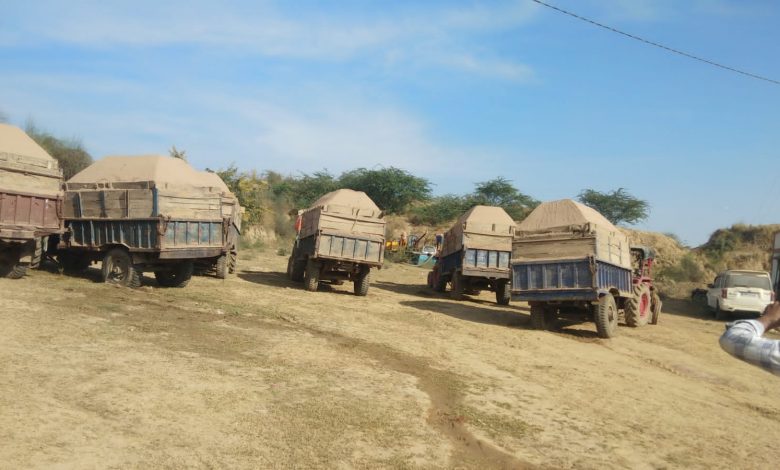 भारौली पुलिस की अवैध रेत परिवहन एवं ओवर लोडिंग के आधा दर्जन ट्रैक्टरों के विरुद्ध कार्यवाही।