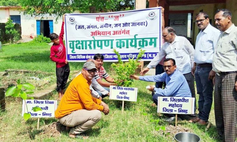 भिण्ड। मप्र राज्य विधिक सेवा प्राधिकरण जबलपुर के निर्देशानुसार तथा प्रधान जिला न्यायाधीश/अध्यक्ष जिला विधिक सेवा प्राधिकरण भिण्ड सुरभि मिश्रा के आदेशानुसार एवं जिला न्यायाधीश/ सचिव जिविसेप्रा भिण्ड हिमांशु कौशल के मार्गदर्शन में जिला शिक्षा अधिकारी एवं जिला शिक्षा केन्द्र के समन्वय से सोमवार को जिला मुख्यालय भिण्ड एवं तहसील लहार, गोहद, मेहगांव में ‘पंच ज’ अभियान के तहत वृहद पौधारोपण कार्यक्रम का आयोजन किया गया।