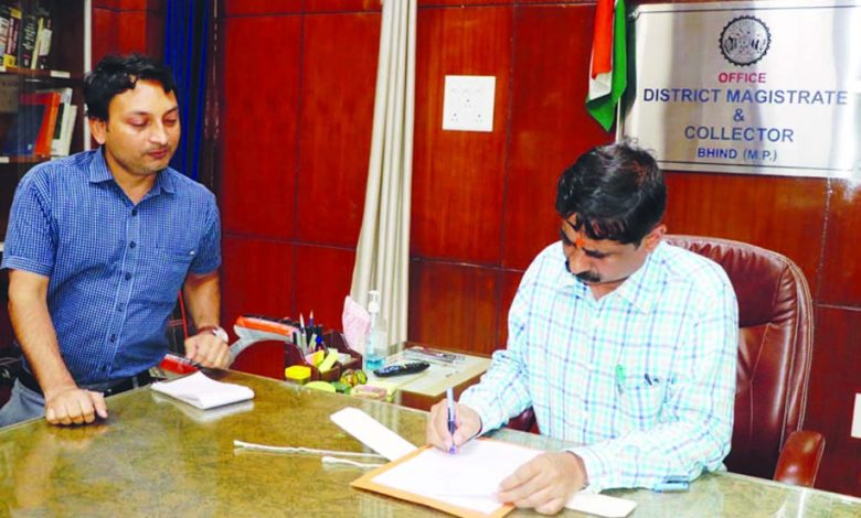 भिण्ड। नवागत भिण्ड कलेक्टर संजीव श्रीवास्तव ने सोमवार को कलेक्ट्रेट भिण्ड पहुंचकर अपना का पदभार ग्रहण कर लिया है। वे मुख्य कार्यपालन अधिकारी मप्र राज्य कौशल विकास एवं रोजगार निर्माण बोर्ड तथा आयुक्त रोजगार एवं उप सचिव खेल एवं युवा कल्याण भोपाल से स्थानांतरित होकर कलेक्टर भिण्ड बनाए गए हैं।