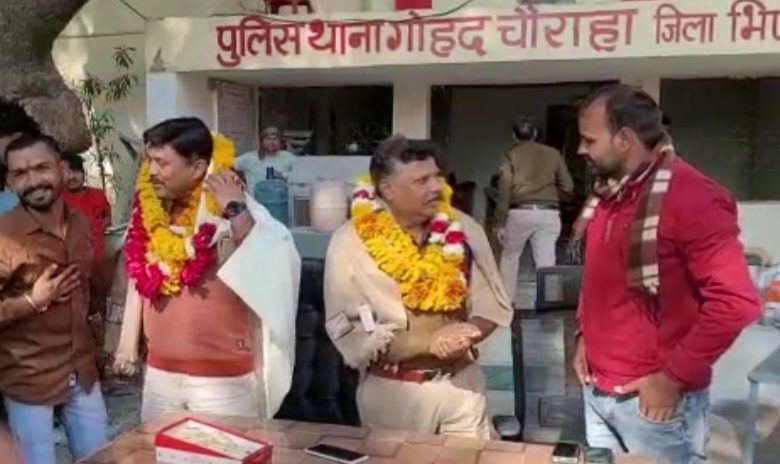 गोहद चौराहा थाना प्रभारी रविंद्र शर्मा की ऐतिहासिक बधाई कर लोगों ने उनके कार्यकाल को सराहा।