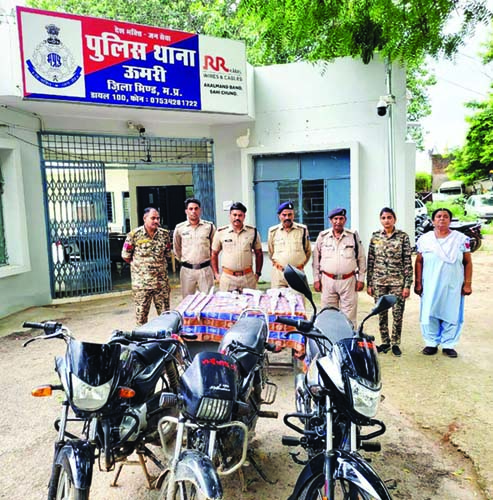 पुलिस अधीक्षक मनीष खत्री ने जानकारी देते हुए बताया कि ऊमरी थाना प्रभारी रविन्द्र शर्मा को सोमवार की रात्रि में मुखबिर सूचना प्राप्त हुई कि ग्राम बिलाव में बिजली घर के पास कुछ शस्त्रधारी बदमाश ग्राम बिलाव के शराब ठेका को लूटने की योजना बना रहे हैं। उन्होंने मुखबिर की सूचना विश्वसनीय होने से वरिष्ठ अधिकारियों को अवगत कराया। वरिष्ठ अधिकारियों द्वारा त्वरित कार्रवाई करने हेतु निर्देशित किया गया। सूचना की तस्दीक हेतु तीन टीमों का गठन किया गया। बाद में मुखबिर के बताए स्थान पहुंचे, जहां एक खेत नुमा मैदान में सात व्यक्ति बैठे दिखे, जिनमें से कुछ व्यक्ति हथियार लिए हुए थे तथा पास में ही तीन मोटर साइकिलें खडी हुई थीं। उक्त व्यक्ति आपस में एक-दूसरे का नाम लेकर चर्चा कर रहे थे कि बिलाव के शराब ठेके को लूटना है, यदि कोई बीच में आता है तो उसको गोली मार देंगे। यह बात थाना प्रभारी तथा हमराही फोर्स ने सुनी। उनकी बातों से यह पूर्ण विश्वास हुआ कि बदमाश डकैती डालने की फिराक में हैं, यदि इनको नहीं पकडा गया तो बडी घटना कारित करेंगे। तब पुलिस टीमों ने दबिश देकर सातों बदमाशों को पकड लिया। जिनके कब्जे से एक फैक्ट्री मेड बंदूक, दो देशी अधिया 315 बोर, दो कट्टा 315 बोर, 18 जिंदा राउण्ड 315 बोर, आठ खाली खोखा, एक-एक कुल्हाडी, लोहे का सब्बल, लोहे की टामी, टॉर्च, तीन मोटर साइकिलें कुल कीमती तीन लाख छह हजार 710 रुपए की बरामद की गईं।