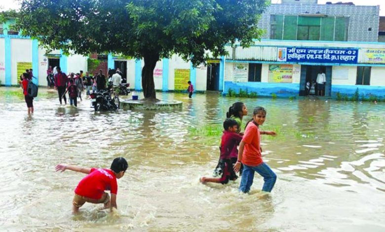 जानकारी के अनुसार भिण्ड जिले में गुरुवार की सुबह से ही झमाझम बारिश का दौर शुरू हुआ, इसी के चलते लहार नगर के मंगला देवी मन्दिर के पास स्थित सीएम राइज विद्यालय क्र.दो बारिश के चलते तालाब में तब्दील हो गया। विद्यालय प्रांगण में पूरी तरह पानी भर गया और शिक्षा व्यवस्था चौपट होते हुए नजर आए वही इस माहौल का विद्यालय में अध्ययन कर रहे छात्र-छात्राओं ने फायदा उठाया और तालाब में नहाते हुए नजर आए।